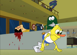 Wooldoor getting erased from existence from an eraser bomb. Eight housemates on a fake animated reality TV show realize theyve been canceled and set off on a journey to get back on the air. Captain Hero - Crushed underneath a falling meteor.